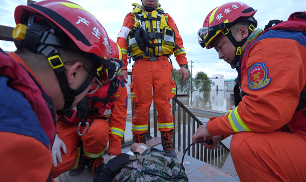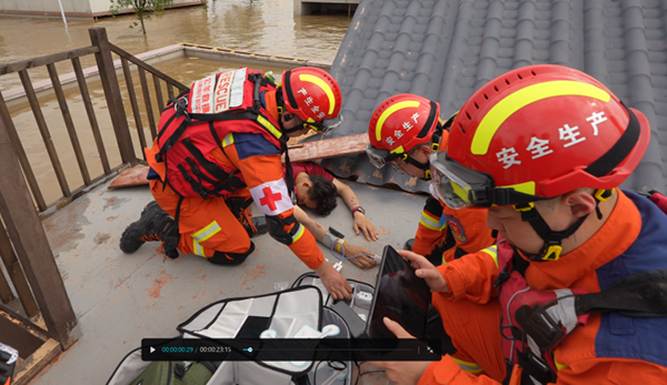 5月10日,国家防汛抗旱总指挥部办公室、应急管理部、浙江省人民政府在浙江金华等地联合举行“应急使命·2024”超强台风防范和特大洪涝灾害联合救援演习。应急总医院按照应急管理部统一部署,调派国家应急医学救援队(中国红十字救护总队)20名队员参加抗洪抢险阶段演习。其中应急总医院两项国家重点研究计划项目课题研究成果在此次演习中进行了示范应用。